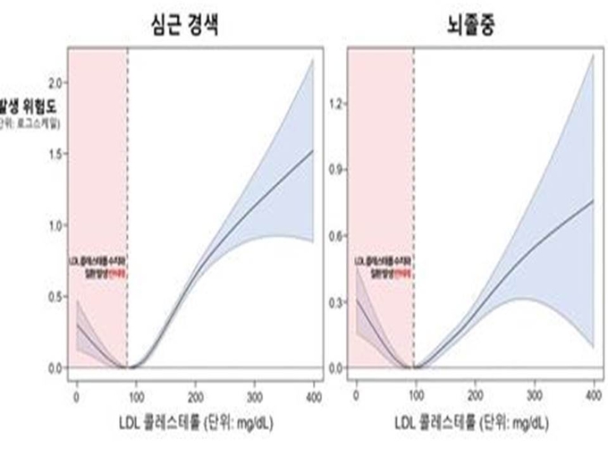 연구팀은 심혈관질환 병력이 없고 고지혈증약도 복용하지 않는 이들을 추적관찰한 결과, LDL 콜레스테롤이 80∼90mg/dL 이하인 경우 이 수치가 낮아질 때 심혈관질환 발생 위험도가 오히려 증가하는 것이 관찰됐다고 밝혔다.