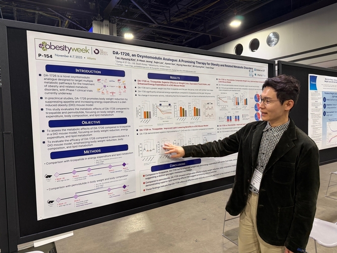 동아에스티와 관계사 메타비아는 미국 애틀랜타에서 열린 미국비만학회에서 비만치료제로 개발 중인 'DA-1726' 임상 1상 및 전임상 연구에서 체중 감소 효과를 확인한 결과를 포스터 발표했다고 4일(현지시간) 밝혔다.