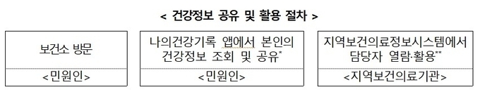 이에 따라 스마트폰에 나의건강기록 앱을 설치한 뒤 공유하려는 날짜의 건강정보(진료·투약·검사 등)를 선택해 지역 보건의료기관에 전송하면 해당 기관에서 이 정보를 바로 활용할 수 있다.