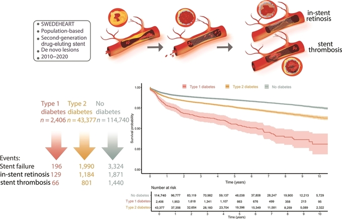 ◆ 출처 : Diabetes Care, Thomas Nyström et al., 'Coronary stent failure in patients with diabetes: A nationwide observational study from SWEDEHEART', http://dx.doi.org/10.2337/dc25-1624