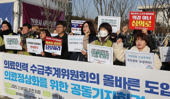연대회의는 "의료계가 추계위 과정에서는 자신들에게 유리한 가정과 변수를 밀어 넣어 영향력을 행사해놓고 이제 와서 '근거가 없다'며 결과를 흔들고 있다"며 "추계위는 공급자 측이 영향력을 행사하기 쉬운 구조인데, 자신들이 참여한 논의 구조 자체를 부정하는 것은 책임 회피"라고 비판했다.