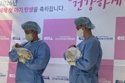 '붉은 말의 해' 병오년이 밝은 1일 0시 0분 서울 강남차여성병원에서 신생아 2명이 동시에 태어났다. 2.88㎏의 쨈이(태명)는 아버지 윤성민(38)씨에게 안기자마자 울기 시작했다. 반면 3.42㎏의 도리(태명)는 조용히 정동규(36)씨의 품에서 온기를 느꼈다. 쨈이는 제왕절개, 도리는 자연분만으로 세상에 나왔다. 산모인 황은정(37)씨와 황혜련(37)씨도 모두 건강하다. 윤성민·황은정씨 부부에게 쨈이는 결혼 4년 만에 얻은 귀한 딸이다. 윤씨는 "새해 첫날 태어나 더 기쁘다"며 "엄마, 아빠랑 즐겁고 행복하게 살았으면 한다"고 웃었다. 그는 딸에게 "태명대로 재미있게 인생을 살았으면 한다"고 했다. 정동규·황혜련씨 부부에게 도리는 첫째 아들에 이은 둘째다. 정씨는 "12월생이 되지 않을까 생각했는데, 아이와 산모가 잘 버텨줘서 2026년 1월 1일의 첫 번째 아이가 됐다"며 "영광스럽게 딸이 찾아와줬다"고 말했다. 그는 "주변을 보면 둘째를 낳는 사람들이 점점 느는 것 같다. 좋은 현상"이라며 "딸아이의 친구들, 동생들도 많이 태어났으면 한다"고 말했다. 강남차여성병원 박희진 산부인과 교수는 "산모와 아기가 모두 건강해 기쁘다"며 "새해 첫날, 소중한 탄