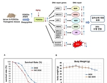 한림대학교는 의과대학 세포분화 및 노화연구소 이재용 연구교수팀이 'FOXO3a' 전사인자가 세포의 디옥시리보핵산(DNA) 복구 활성을 전반적으로 강화해 방사선 손상에 대한 보호 효과와 수명 연장 효과를 나타낸다는 사실을 규명했다고 15일 밝혔다. FOXO3a 단백질은 변성 단백질, 기능상 문제가 있는 미토콘드리아 등 세포 속 불필요한 물질을 없애는 자가 포식작용을 조절하는 일종의 '스위치'이다. 연구팀은 테트라사이클린(tetracycline)을 섭취하면 FOXO3a를 과발현하는 유전자 변형 쥐를 마련해 FOXO3a의 기능을 정밀 분석했다. 그 결과 FOXO3a가 활성산소 제거, 세포 사멸 조절, 줄기세포 활성, 자가포식 등 다양한 생리활성에 관여한다는 점을 확인했다. 또 노화 과정에서 FOXO3a 발현 감소가 DNA 복구 활성 저하로 이어진다는 사실도 밝혀냈다. 연구팀은 테트라사이클린 프로모터(tetracycline promoter) FOXO3a 유전자를 쥐 배아에 주입해 항생제 테트라사이클린 섭취 시 온몸에 FOXO3a가 과발현되는 유전자 변형 쥐를 확보하기도 했다. 이 모델을 통해 FOXO3a 과발현 시 비상동 말단 결합(Non-homologous end