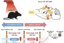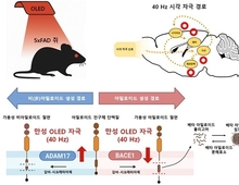 한국과학기술원(KAIST)은 전기및전자공학부 최경철 교수 연구팀과 한국뇌연구원(KBRI) 구자욱·허향숙 박사 연구팀이 공동 연구를 통해 균일 조도의 청색·녹색·적색 등 3색 OLED(유기발광다이오드) 광자극 기술을 개발했다고 29일 밝혔다. 연구팀은 이들 색 가운데 '적색 40Hz 빛'이 알츠하이머 병리와 기억 기능을 가장 효과적으로 개선한다는 사실을 확인했다. 연구팀이 균일하게 빛을 내는 OLED 기반 광자극 플랫폼을 활용해 백색·적색·녹색·청색 빛을 동일한 조건(40Hz 주파수·밝기·노출시간)에서 비교한 결과, 적색 40Hz 빛이 가장 우수한 개선 효과를 보였다. 초기 병기(3개월령) 동물 모델은 단 2일 자극만으로도 병리 및 기억력이 개선되는 것을 확인했다. 초기 알츠하이머 동물 모델에 하루 1시간씩 이틀간 빛을 쬔 결과, 백색·적색 빛 모두 장기기억이 향상되었고, 해마 등 중요한 뇌 영역에 쌓여 있던 알츠하이머병의 대표적인 원인 물질로 알려진 단백질 찌꺼기 '아밀로이드베타(Aβ) 플라크'가 줄었다. 플라크를 제거하는 데 도움이 되는 효소(ADAM17)는 더 많이 만들어졌다는 사실도 확인했다. 즉, 아주 짧은 기간의 빛 자극만으로도 뇌 속 나쁜 단백질이