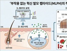 대구경북과학기술원(DGIST)은 기존 탈모약 사용에서 발생하는 부작용 없이 모발 성장을 촉진하는 신약 물질을 개발했다고 22일 밝혔다. DGIST 뇌과학과 문제일·김소연 교수와 뉴바이올로지학과 이창훈 교수, 경북대 의과대학 성영관 교수·곽미희 박사 등이 공동 수행한 이번 연구는 컴퓨터 모델링을 활용해 모발 성장을 돕는 신규 '펩타이드(MLPH)'를 개발한 것을 주요 내용으로 한다. 그간 학계에서는 조혈호르몬인 에리스로포이에틴(EPO)이 모낭 세포 수용체와 결합해 발모를 촉진한다는 사실은 확인했다. 하지만 탈모 치료를 목적으로 이를 체내에 투여하면 적혈구가 과다 생성되는 등 심각한 혈액학적 부작용이 발생하는 탓에 실제 의약품으로 활용하기는 불가능했다. 공동연구팀은 이러한 한계를 극복하기 위해 첨단 컴퓨터 모델링을 사용한 구조 기반 설계 기법을 도입해 EPO 단백질 구조에서 부작용을 일으키는 부분은 제외하고, 모낭 세포 수용체와 결합해 발모를 유도하는 핵심 부위만 정밀하게 추출·최적화해 MLPH를 독자적으로 설계했다. 또 인간 모낭 조직과 쥐를 이용한 생체 실험을 실시해 MLPH가 모발 성장 핵심 인자(IGF-1) 분비를 크게 늘리지만, 적혈구혈구 증가 등 조혈