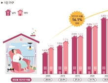 국내 1인 가구가 계속 늘어 지난해 전체 가구에서 차지하는 비율이 36%를 돌파한 것으로 나타났다. 30일 보건복지부가 발간한 2024년 사회보장 통계집에 따르면 1인 가구는 804만5천 가구로, 전체 가구 중 36.1%를 차지했다. 2015년 520만 가구(27.2%)였던 1인 가구는 2020년 664만 가구(31.7%)로 전체에서 차지하는 비율이 30%를 넘겼고, 이후로도 매년 늘어왔다. 지금과 같은 추이가 계속되면 1인 가구는 2027년 855만 가구, 2037년 971만 가구, 2042년에는 994만 가구에 이를 것으로 추산된다. 지난해 65세 이상 노인 인구는 사상 처음으로 1천만명에 이르렀다. 우리나라는 전체 인구 중 노인이 차지하는 비중이 20.1%로 처음으로 20%를 돌파하면서 '초고령화 사회'에 진입했다. 전국 어린이집은 2013년 4만3천770개에서 매년 줄어 2022년 3만923개, 2023년 2만8천954개, 지난해에는 2만7천387개까지 급감했다. 전체 어린이집이 감소하는 가운데 국공립 어린이집의 비중은 늘어 지난해 기준 전체의 23.8%를 차지했다. 지난해 사교육 참여율은 처음으로 80%를 기록했다. 전년(78.5%)보다 1.5%포인