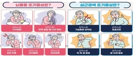 평소와 달리 말투가 어눌해지거나 갑자기 한쪽 얼굴과 팔·다리에 힘이 빠지면서 마비되는 듯한 느낌이 들고 심한 두통이 나타난다면 뇌졸중을 의심해 즉시 병원을 찾아야 한다. 갑자기 가슴에 심한 통증이나 압박감, 짓누르는 느낌이 있고 숨이 많이 찰 때는 심근경색을 의심해야 한다. 질병관리청은 설 연휴를 앞두고 본인이나 가족에게 이러한 뇌졸중, 심근경색 의심 증상이 나타나면 바로 119에 연락해 적절한 치료를 받아달라고 10일 당부했다. 뇌졸중, 심근경색은 우리나라 사망원인 2위, 4위에 해당하는 심장질환, 뇌혈관질환 중 하나다. 뇌 또는 심장근육에 혈액을 공급하는 혈관에 이상이 생겨 생존하더라도 심각한 장애를 동반할 수 있으므로 조기에 발견·치료하는 게 중요하다. 그러나 국내 성인 10명 중 5∼6명만 뇌졸중과 심근경색의 증상을 인지하는 수준이다. 2025년 지역사회건강조사 기준 뇌졸중의 조기증상 인지율은 60.7%, 심근경색의 조기증상 인지율은 51.5% 정도여서 인식 제고가 필요하다고 질병청은 강조했다. 뇌졸중과 심근경색 조기 증상은 갑자기 나타나는 게 특징이다. 대표적으로는 ▲ 한쪽 얼굴, 팔, 다리에 힘이 빠짐 ▲ 말이 어눌해지거나, 다른 사람의 말을 이해