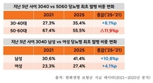 당뇨의 최초 발병 시기가 빨라지며 한화생명에 당뇨로 보험금을 청구한 고객 3명 중 1명이 30·40세대로 나타났다. 한화생명이 '세계 당뇨병의 날'을 맞아 최근 5개년 자사 보험금지급 데이터 36만건을 분석한 결과, 올해 당뇨로 실손보험금을 청구한 고객의 35.4%가 30·40대로 나타났다. 지난 2021년 27.3%에서 8.1%p 늘어났다. 반면 50·60대는 55.5%로, 5년 전보다 11.9%p 감소했다. 남성이 여성보다 조기 발병위험이 컸다. 5년전 당뇨 발병 연령은 남성의 경우 30·40대가 30.6%를 차지했으나 올해는 41.4%에 달했다. 반면 여성은 23.3%에서 올해 27.4%로 소폭 증가했다. 당뇨 환자는 다른 만성질환에 비해서도 합병증 위험이 전반적으로 더 높게 나타났다. 40대 당뇨 환자의 암·뇌심혈관질환 보험금 청구 비율은 7.4%, 50대는 10.6%로 같은 연령대의 고혈압 환자(각각 6.3%, 9.1%)보다 높았다. 당뇨 발병 이후 2년 이내 지급된 실손보험금 청구 건의 의료비를 분석한 결과 1인당 평균 의료비는 약 333만원으로 나타났다. 같은 조건에서 고혈압 환자가 청구한 1인당 평균 의료비 약 242만원 대비 1.4배 높았다.