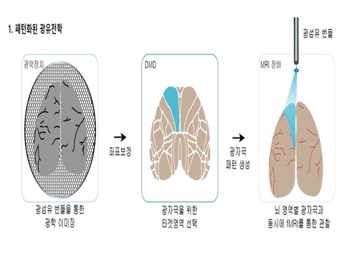 기초과학연구원(IBS)은 김성기 뇌과학 이미징 연구단장과 서울대 생명과학부 최명환 교수 공동연구팀이 빔프로젝터로 패턴화한 광유전학적 자극으로 살아있는 쥐의 대뇌 피질 활동을 자유롭게 조절하고, 기능적 자기공명영상(fMRI)으로 뇌 전체 영역을 스캔해 뇌 연결 지도를 만드는 기술을 개발했다고 3일 밝혔다.