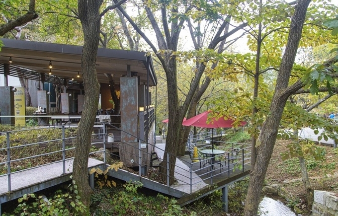 숲 끝자락에는 야외 테이블에서 책을 읽을 수 있도록 '숲속의 작은 서재'도 마련해 놓았다.