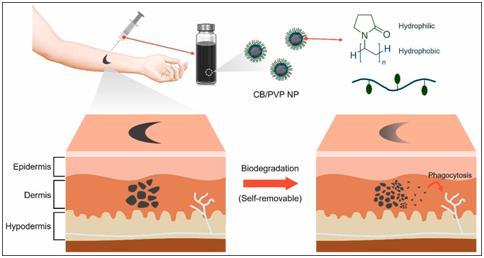 논문에 따르면 고분자 화합물 폴리비닐피롤리돈(PVP)으로 코팅된 카본 블랙 나노입자는 생체적합성을 유지하면서도 대식세포(phagocytosis)에 의해 점진적으로 제거되는 특성을 보였다.