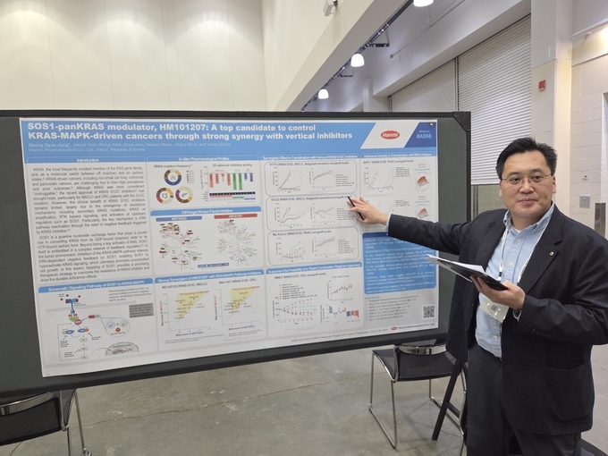 정 연구원은 "HM101207 단독으로는 효능이 거의 나오지 않는다"며 "아다그라십(KRAS G12c 표적치료제) 등과 병용했을 때 시너지가 좋다"고 말했다.
