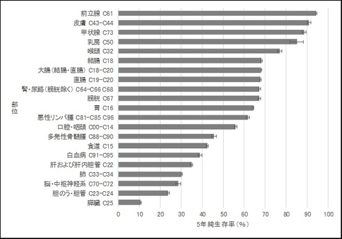 일본 암 환자의 5년간 생존율이 다발성골수종, 전립선암, 악성림프종 등에서는 높아졌지만 담낭암, 담관암, 췌장암 등에서는 큰 변화가 없던 것으로 조사됐다.