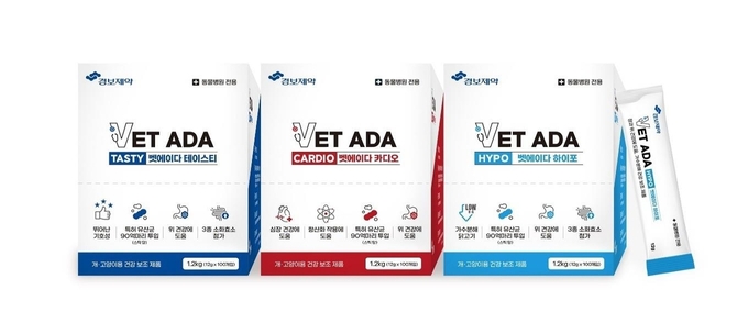 경보제약은 최근 반려동물의 투약 보조와 건강 관리를 돕는 동물병원 전용 제품 '벳에이다 3종(테이스티·하이포·카디오)'을 출시했다고 28일 밝혔다.