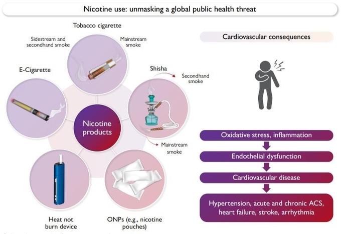 모든 담배의 니코틴은 강한 심혈관 독소이고, 전자담배 등 새로운 니코틴 제품은 위험 감소가 아니라 중독 확산을 초래하기 때문에 담배와 같은 수준의 강력한 규제가 필요하다는 전문가 경고가 나왔다.