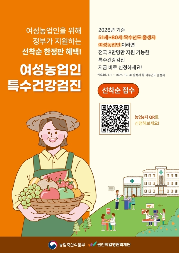 구체적인 검진 일정과 참여 의료기관은 추후 각 지방자치단체와 농업e지 앱을 통해 안내될 예정이다.