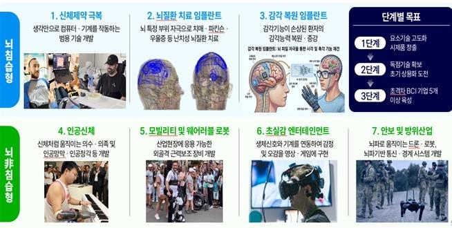 정부가 사람 뇌에 칩을 이식해 생각만으로 로봇이나 컴퓨터를 구동하는 뇌-컴퓨터 인터페이스( BCI)를 핵심 미래산업으로 꼽고 내년부터 7대 임무중심 프로젝트에 착수한다.