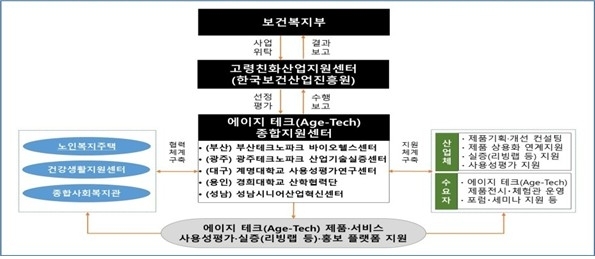 이번에 선정된 부산·광주테크노파크·계명대, 경희대, 성남시니어산업혁신센터 등 종합지원센터들은 사업 수행을 위해 올해 1억4천만원을 지원받는다.