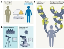 두 개 이상의 언어를 일상적으로 사용하는 '다언어 사용'(Multilingualism)이 노년층에서 노화가 가속될 위험을 줄여줄 수 있다는 연구 결과가 나왔다. 아일랜드 트리니티 칼리지 더블린 아구스틴 이바녜즈 교수가 이끄는 국제 연구팀은 12일 과학 저널 네이처 노화(Nature Aging)에서 유럽 27개국 8만6천여명의 데이터를 분석, 다언어 사용과 가속 노화(accelerated ageing)의 위험 감소 간 연관성을 확인했다고 밝혔다. 연구팀은 한 언어만 사용하는 사람은 다언어 사용자보다 가속 노화를 겪을 확률이 약 두 배 높았다며 이는 인구 수준에서 건강한 노화 촉진을 위한 전략으로 다언어 사용을 장려하는 것이 도움이 될 수 있음을 시사한다고 말했다. 노화는 인지 기능 저하와 신체적 기능 손상과 관련된 주요 글로벌 보건 문제로, 이를 보호할 수 있는 요인을 규명하는 것은 중요한 과제다. 연구팀은 이전 연구에서는 다언어 사용이 인지 기능 유지에는 도움이 될 수 있다는 결과가 제시됐지만 표본 크기가 작거나 임상 집단이 한정적이었고, 노화를 간접적으로 측정한 경우가 많아 근거가 일관되지 않았다고 지적했다. 이들은 이 연구에서 유럽 27개국 8만6천149