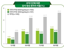 대웅제약은 간 기능 개선제 '우루사'의 주성분 UDCA(우르소데옥시콜산)를 위암 수술 후 12개월간 복용하고 중단하더라도 최대 80개월까지 담석 예방 효과가 지속되는 것으로 처음 확인됐다고 28일 밝혔다. 대웅제약에 따르면 위암 환자에서 위절제술 후 담석 형성 예방 효과를 평가한 PEGASUS-D 연장연구 결과가 외과학 분야 최상위 국제학술지 IJS(International Journal of Surgery·Impact Factor 10.3)에 게재됐다. 이번 연구는 서울대병원 위장관외과 박도중 교수·소화기내과 이상협 교수, 서울특별시보라매병원 소화기내과 장동기 교수(현 삼성서울병원), 분당서울대병원 외과 박영석 교수, 서울아산병원 위장관외과 유문원 교수 외 국내 연구진이 수행했다. 연구진이 UDCA를 12개월 복용 후 중단한 환자군을 추적 관찰한 결과, 담석 발생 위험 감소 효과가 80개월까지 유지됐다. 80개월 시점 담석 발생률은 가짜 약을 복용한 위약군이 26.21%인 반면 UDCA 300㎎군은 10.0%, 600㎎군은 12.83%에 그쳤다. 위약군 대비 담석 형성 비율이 300㎎군에서 약 67% 낮았고, 600㎎군에서는 약 57% 낮아 모두 통계적으로
