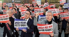 법정 의사단체인 대한의사협회(의협)는 정부의 성분명 처방, 한의사 엑스레이(X-ray) 허용, 검체 검사제도 개편 등을 '악법'으로 규정하고 정부가 이를 허용할 경우 총력 투쟁에 나서기로 했다. 범의료계 국민건강보호 대책특별위원회 위원장을 맡는 김택우 의협회장은 16일 서울 여의도 국회 앞에서 연 전국 의사 대표자 궐기대회 대회사에서 이렇게 밝혔다. 김 회장은 "성분명 처방 강행은 곧 의약 분업의 원칙을 파기하는 것"이라며 "한의사에게 엑스레이 사용을 허용하는 것은 면허 체계의 근본을 훼손하는 의료 악법이고, 검체 검사 보상체계 개편도 개악"이라고 비판했다. 보건복지부는 과도한 할인 관행을 개선하고자 검체 검사 보상체계를 개편한다는 방침이다. 검체 검사 위탁 비중이 높은 동네의원들 입장에선 수입 감소로 이어질 수 있는 개편이라 개원가를 중심으로 특히 반발하고 있다. 김 회장은 "이 세 가지 악법은 국회와 정부의 정책 폭주에서 나온 처참한 결과물"이라며 "국회와 정부가 의료계 대표자들의 외침을 외면한다면 14만 의사 회원의 울분을 모아 강력한 총력 투쟁에 들어가겠다"고 강조했다. 이날 궐기대회에 참석한 의사들은 "환자 안전 위협하는 성분명 처방 규탄한다", "